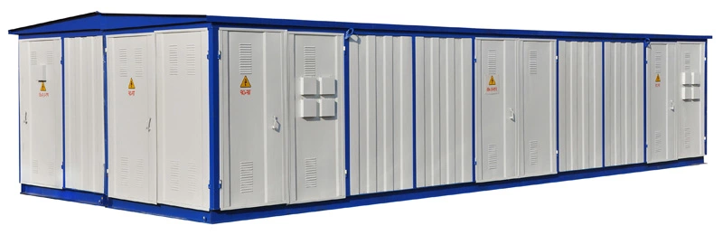 КТП поставляется в блочно-модульных кабинах высокой заводской готовности обшитых панелями из профильного листа или панелями типа «Сендвич». В кабины вмонтированы силовые трансформаторы, шкафы высокого и низкого напряжения. Под силовыми трансформаторами установлены маслоприемники, предназначенные для приема не менее 20% масла трансформатора.